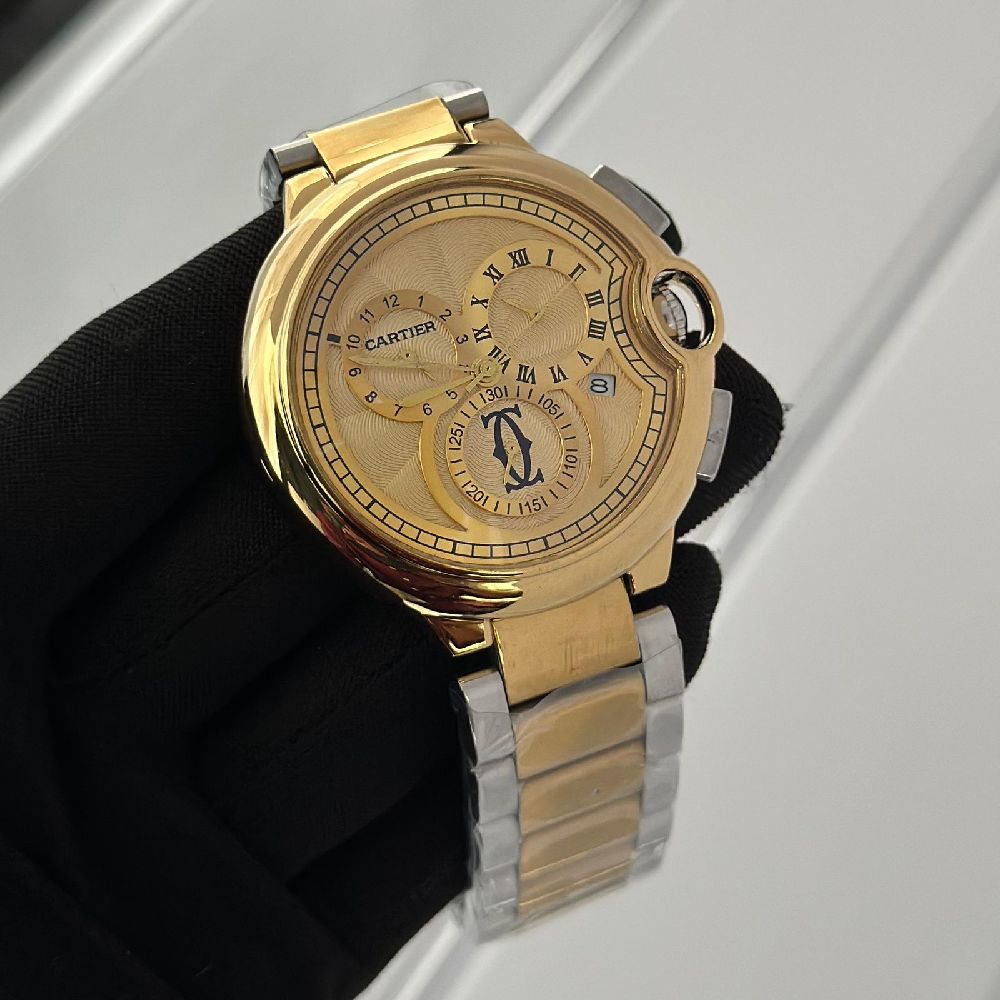 Elevate your style with the Cartier Luxe Gold Chain Watch. This luxurious timepiece features a sleek gold chain link bracelet and a stunning gold dial. Perfect for adding a touch of sophistication to any outfit, this watch is a must-have accessory for any fashion-forward individual. Treat yourself or a loved one to the ultimate in luxury with the Cartier Luxe Gold Chain Watch.