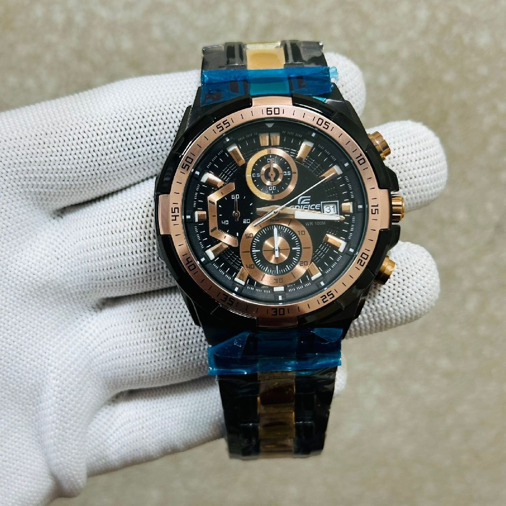Stay on trend with this sleek Edifice black and bronze chain watch. The combination of black and bronze creates a sophisticated and modern look, perfect for any occasion. With its chain wristband and bold face, this watch is sure to make a statement. Whether you're dressing up for a night out or keeping it casual during the day, this Edifice watch is the perfect accessory to elevate your style.