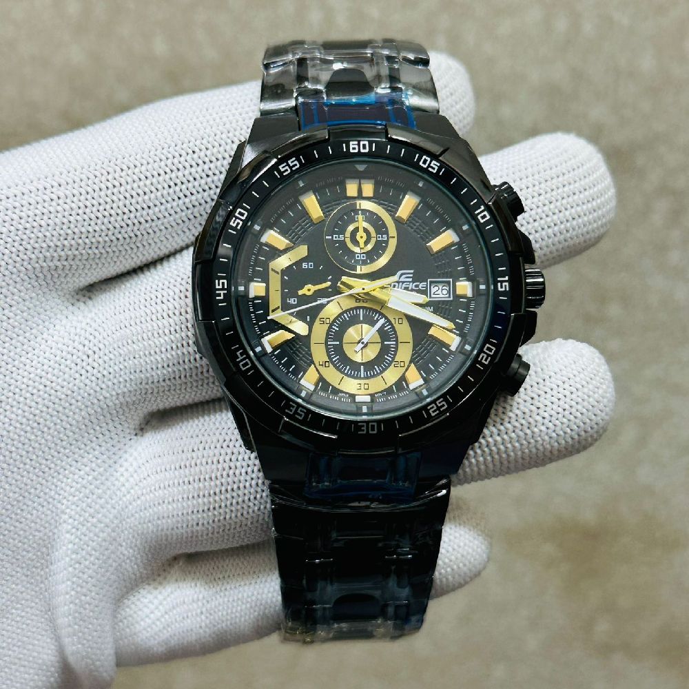 Stay stylish and on time with the Edifice Elite Black Chain Wristwatch. This sleek and modern timepiece features a black stainless steel chain strap, a bold black dial, and luminous hands for easy reading in any light. Perfect for any occasion, this wristwatch is sure to make a statement wherever you go.