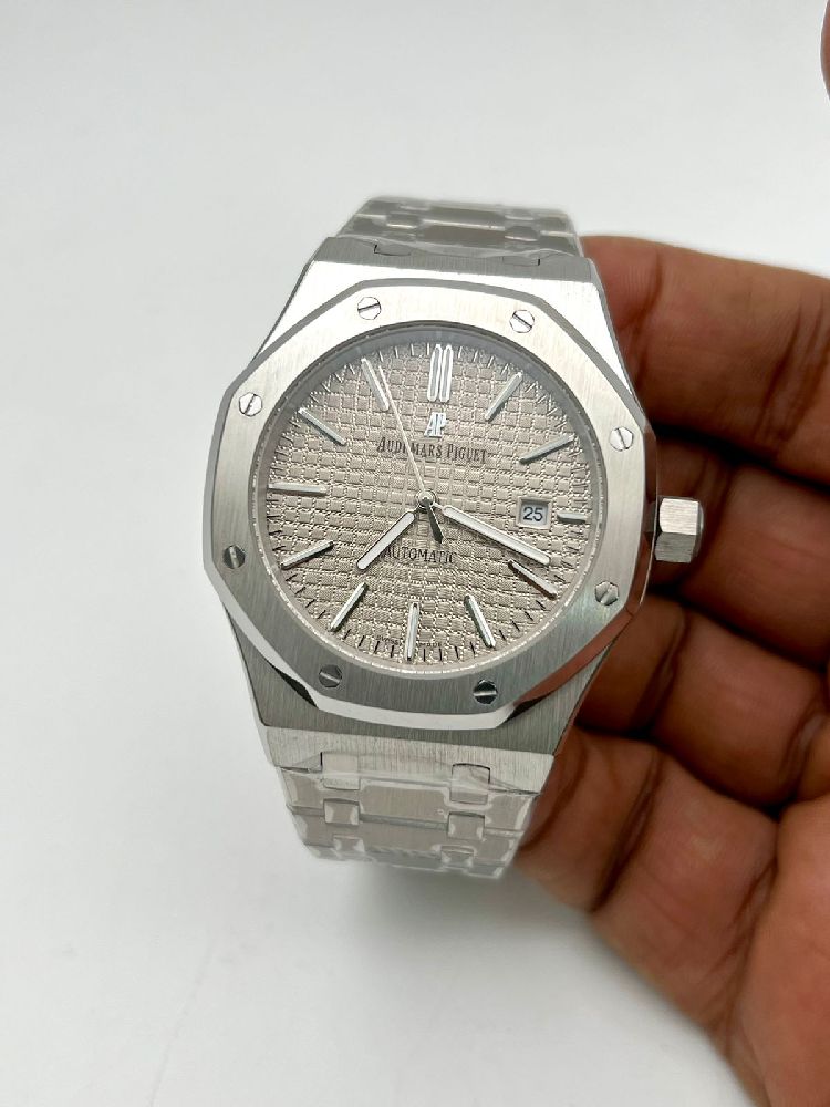 Make a statement with this elegant AP Silver Chain Wrist Watch. Crafted with precision and style, this watch is perfect for any occasion. The sleek silver chain complements the modern design of the watch face, while the reliable movement ensures accurate timekeeping. Add a touch of sophistication to your wrist with this must-have accessory.