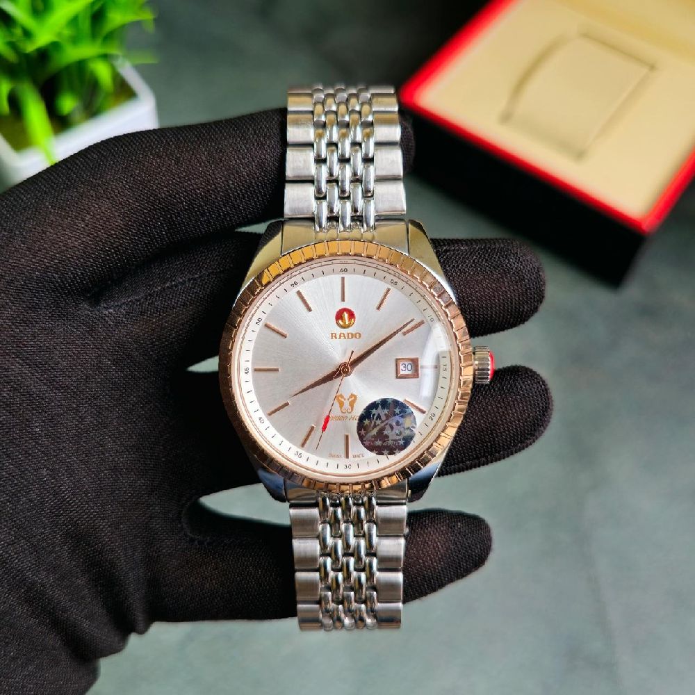 Elevate your style with the sleek Rado Classic Stainless Steel Timepiece. This luxurious watch features a classic design with a stainless steel band and case, perfect for any occasion. The quartz movement ensures accurate timekeeping, while the scratch-resistant sapphire crystal provides durability. Add this timeless piece to your collection today.