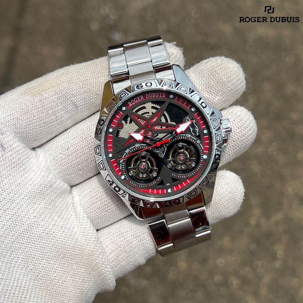 Stay stylish with the Rojer Dobes Classic Designer Watch. This sleek timepiece features a timeless design that will elevate any outfit. Made with high-quality materials, it is durable and long-lasting. The black dial and silver stainless steel strap give it a modern and sophisticated look that is perfect for any occasion. Treat yourself or a loved one to this elegant watch and make a statement wherever you go.