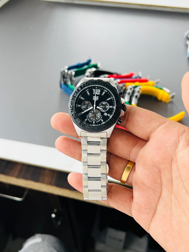 Upgrade your style game with the Tag Heuer Elegant Silver Chain Timepiece. This luxurious watch features a sleek silver chain and a sophisticated design that will make a statement wherever you go. Whether you're dressing up for a special occasion or just want to add some flair to your everyday look, this timepiece is the perfect accessory. Treat yourself or surprise a loved one with this timeless piece of elegance.