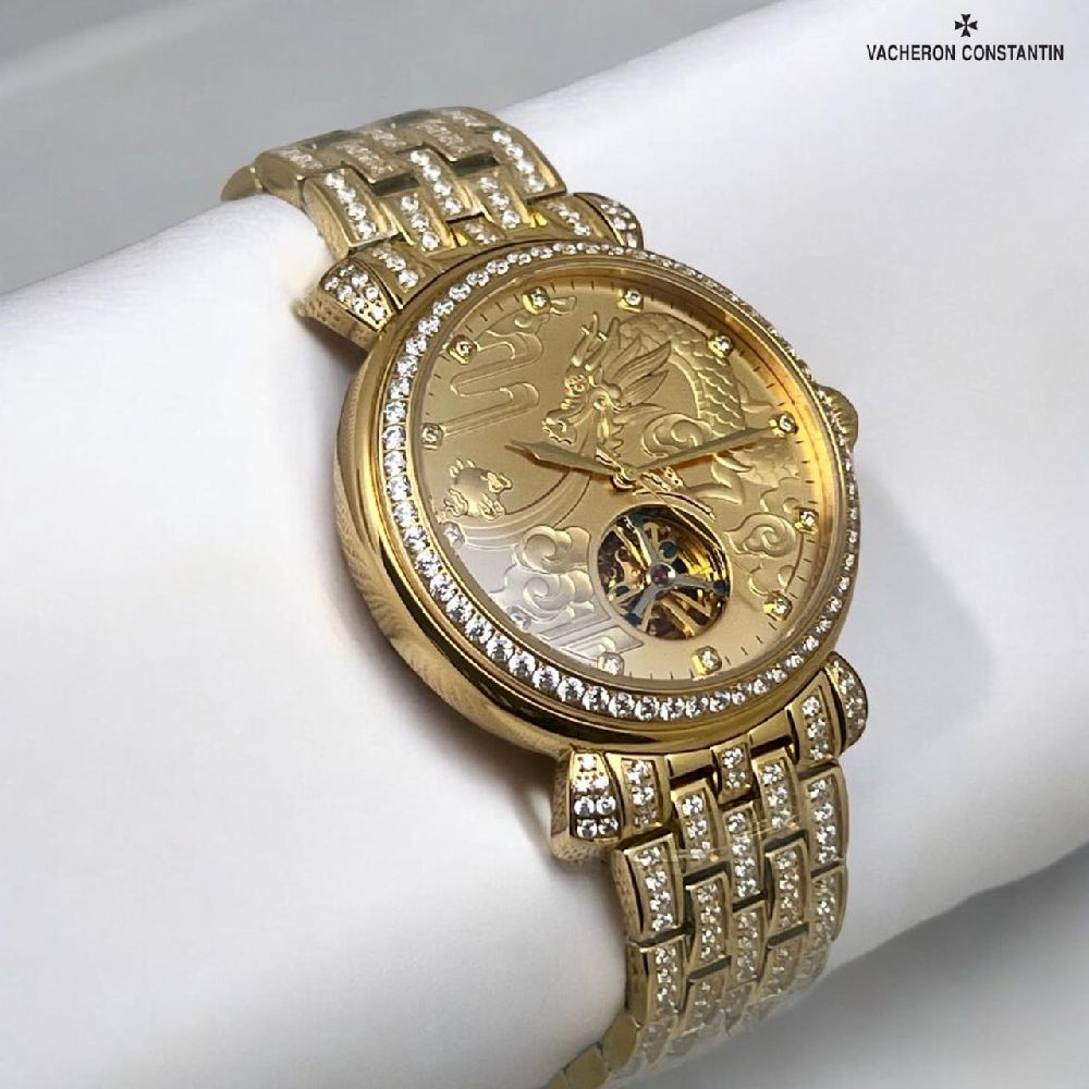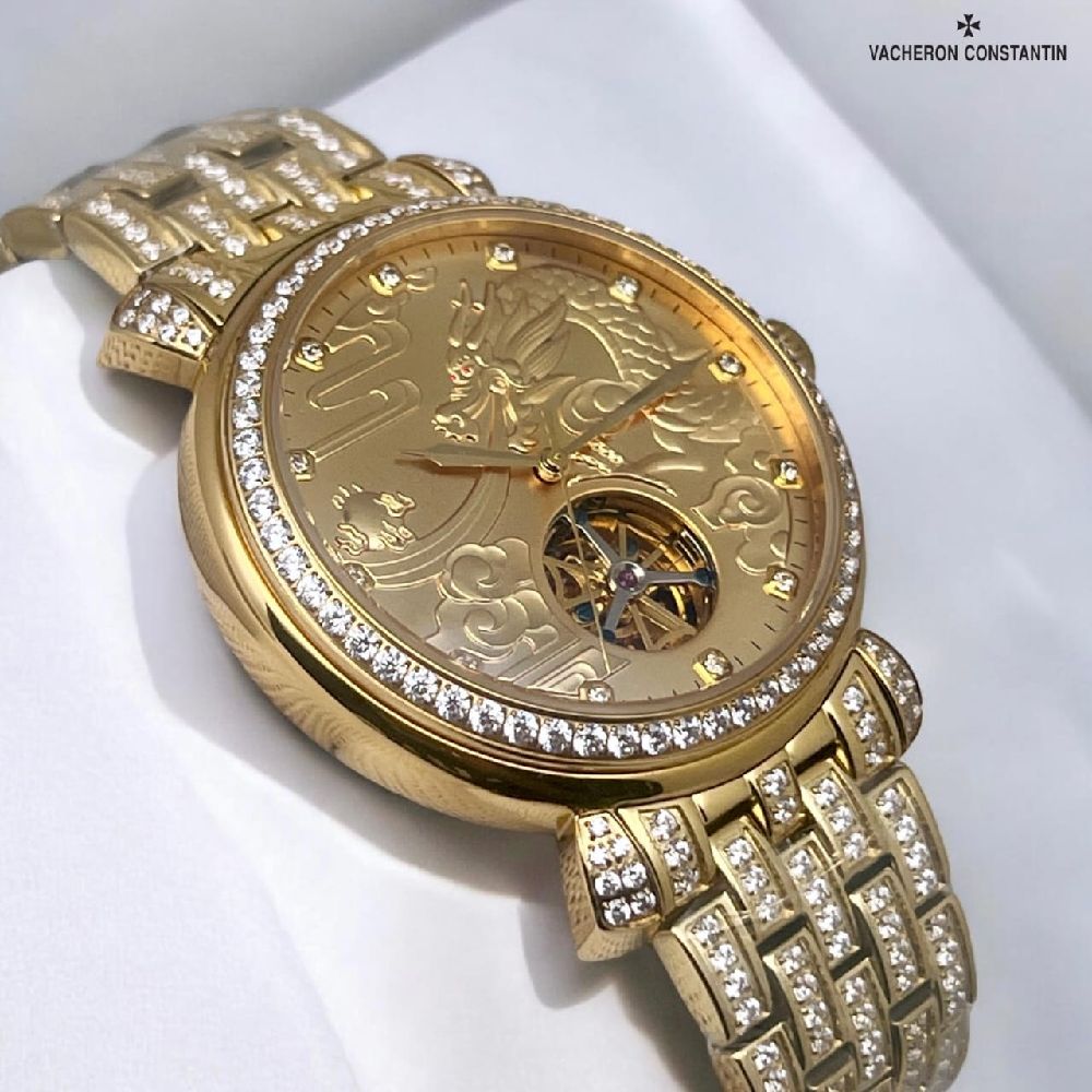 Elevate your style with the Vacheron Constantin Golden Elegance Chain Watch. This luxurious timepiece features a stunning gold chain design that exudes sophistication and class. With Swiss-made precision and impeccable craftsmanship, this watch is a timeless addition to any collection. Treat yourself to the ultimate in elegance and luxury.